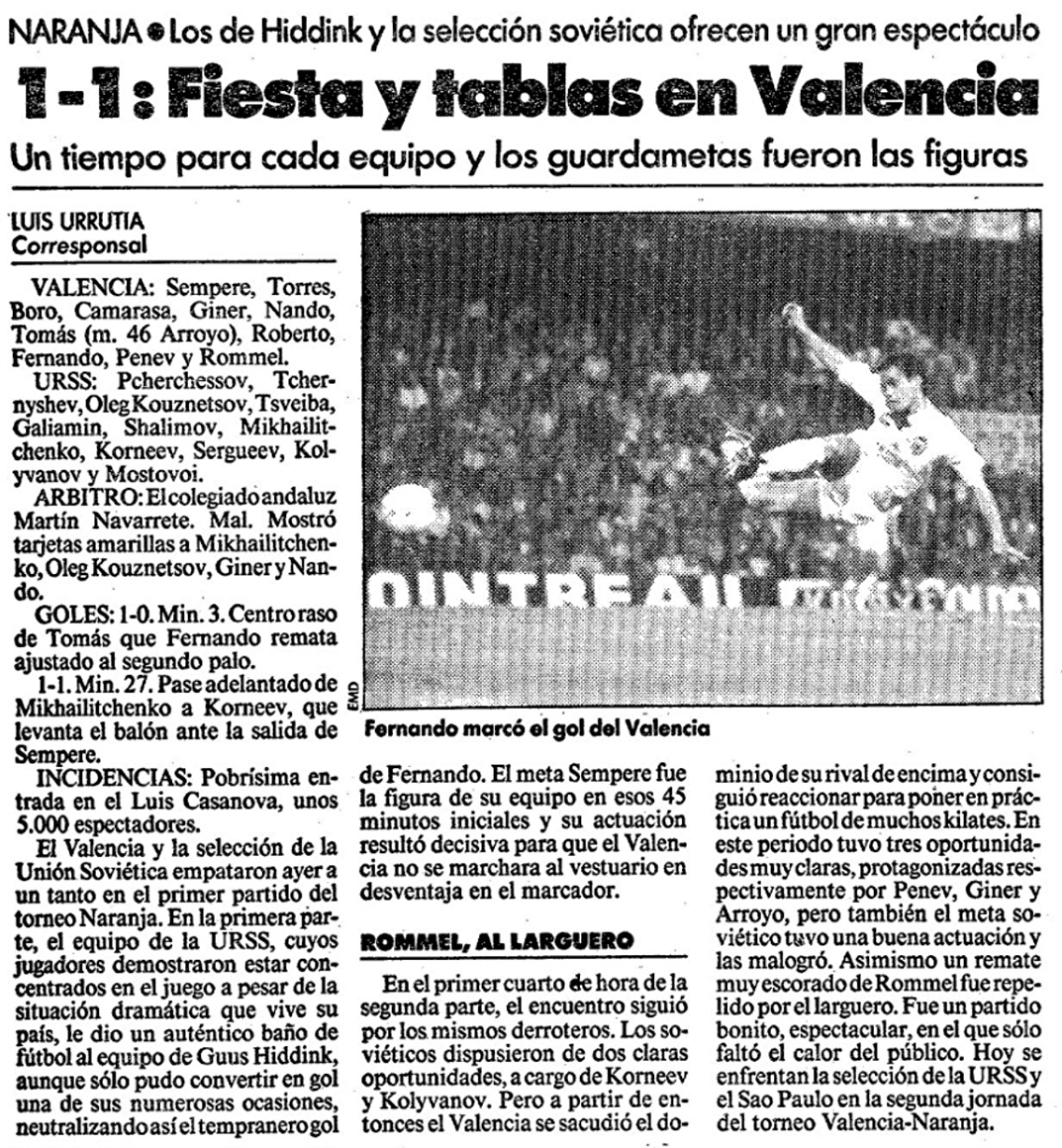 «ВАЛЕНСИЯ» Валенсия, Испания - СССР - 1:1 (1:1)