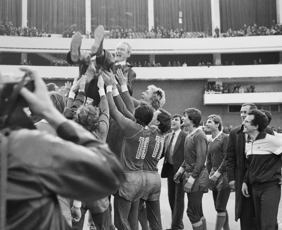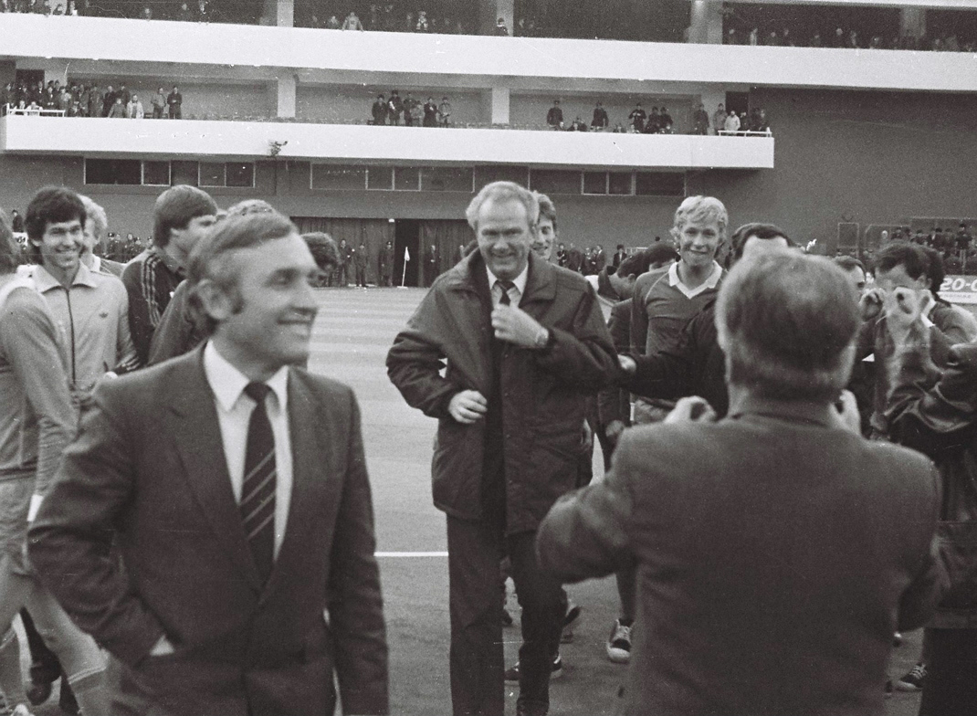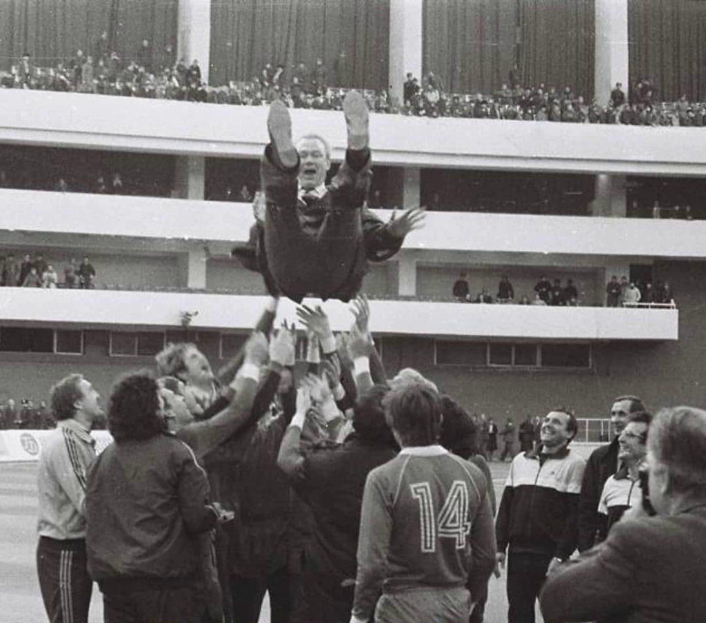 В перерыве игры объявили, что после поражения минчан в Донецке киевское "Динамо" в 11-й раз стало Чемпионом СССР.