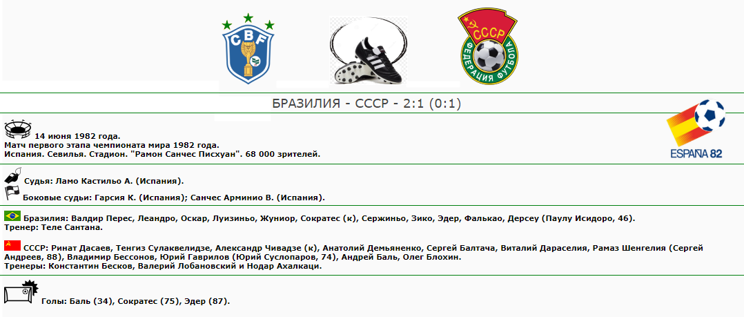 ФОТО ОТЧЕТНОГО МАТЧА БРАЗИЛИЯ - СССР (14 июня 1982 года. Матч первого этапа чемпионата мира 1982 года. Севилья. Стадион «Рамон Санчес Писхуан»)