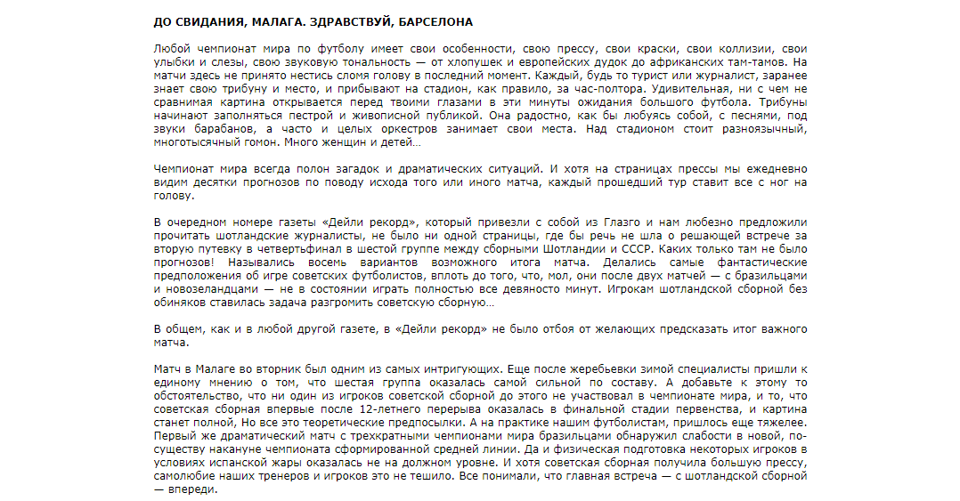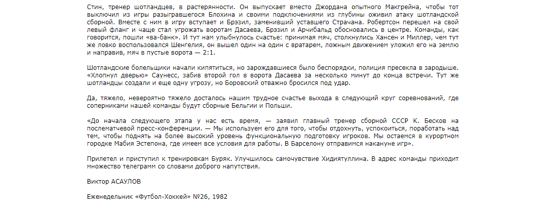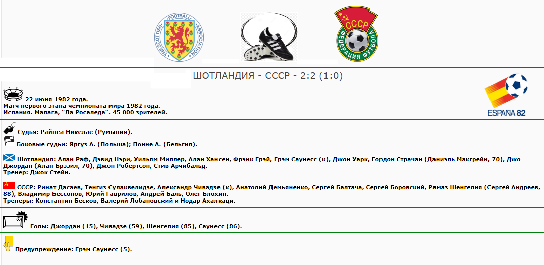 ФОТО ОТЧЕТНОГО МАТЧА ШОТЛАНДИЯ - СССР (22 июня 1982 года. Матч первого этапа чемпионата мира 1982 года. Испания. Малага. Стадион «Ла Росаледа»)
